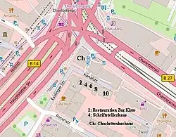 - ↑ Wilhelm mit dem Barte: Wilhelm II., Privatpalais: Wilhelmspalais, heute Stadtpalais, Kriegsministerium: es lag an der Stelle des heutigen Charlottenhochhauses.