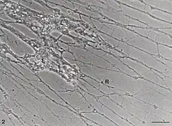 - ↑ Ralf N. Breuker: Cytoskelettkomponenten des plasmodialen Rhizopoden Reticulomyxa filosa., 1997, Dissertation zur Erlangung des Grades eines Doktors der Naturwissenschaften der Abteilung für Biologie an der Ruhr-Universität Bochum, „Einleitung“, Online