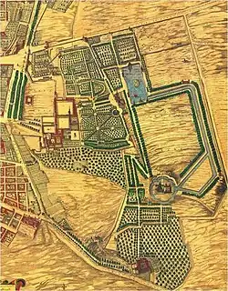 Der Cason del Buen Retiro, davor das barocke Parkett des Parks -