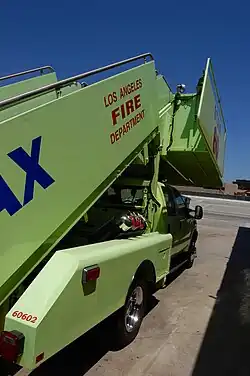 Rettungstreppenfahrzeuge sind für die schnelle und sichere Evakuierung von Flugzeugpassagieren in Notsituationen ausgerichtet. Die Fahrzeuge können daher teilweise mit knapp über einer Minute am Einsatzort einsatzbereit in Stellung gebracht und zur Rettung eingesetzt werden.[1] Sie besitzen an der Haupttreppe eine Rettungsplattform, die bündig an eine Flugzeugwand bzw. an die Ausgänge herangefahren wird. Neuere Fahrzeuge besitzen neben der Haupttreppe eine Nebentreppe als sekundären Rettungsweg und zum gleichzeitigen Aufstieg für Rettungskräfte, Notfallmediziner und Angriffstrupps zur Evakuierung und Brandbekämpfung.