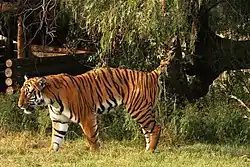 Die Größe von Raubtier-Revieren ist stark variabel. Territorien von Tüpfelhyänen beispielsweise sind zwischen weniger als 40 km² im Ngorongoro und mehr als 1000 km² in der Kalahari groß.[6] Beim Tiger verhalten sich sowohl Männchen als auch Weibchen territorial, wobei das Revier des Männchens mit 50 bis 300 km² meist größer als das des Weibchens ist, und treffen sich nur zur Paarungszeit.