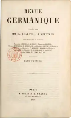 - Stempel, Ilse: Deutschland in der „Revue germanique“ von Dollfus und Nefftzer: (1858–1865). Bonn, Univ., Diss., 1967. 247 S.