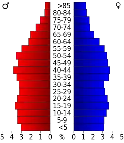 23,7 Prozent der Bevölkerung waren unter 18 Jahre alt, 10,0 Prozent zwischen 18 und 24, 27,5 Prozent zwischen 25 und 44, 25,0 Prozent zwischen 45 und 64 und 13,8 Prozent waren älter als 65. Das Durchschnittsalter betrug 37 Jahre. Auf 100 weibliche Personen kamen statistisch 94,3 männliche Personen und auf 100 Frauen im Alter von 18 Jahren und darüber kamen 91,7 Männer.
