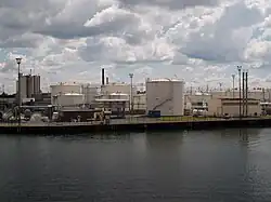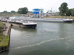 Der Raffineriehafen der BP Gelsenkirchen GmbH ist zweigeteilt mit einem westlichen Becken parallel zum Kanal und zu diesem offen, mit vier Liegeplätzen an der Kaimauer und einem östlichen Hafenbecken für zwei Schiffe. Während der Verladung von Raffinerieprodukten auf Tankschiffe ist eine Druckluftölsperre aktiv. Über diesen Hafen werden mit vier Millionen Tonnen ein Drittel der Gesamtproduktion[9] des Werkes verschifft. Größten Anteil daran haben die Kraftstoffe.