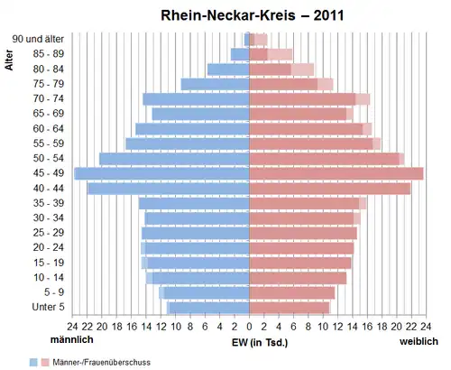 - ↑ Datenbank Zensus 2011, Rhein-Neckar-Kreis, Alter + Geschlecht