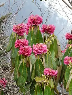 Viele Rhododendron-Arten sind an nährstoffarme Habitate durch ihre einzigartigen ericoiden Mycorrhizapilze angepasst. Auch die derben, immergrünen Laubblätter sind eine besondere Anpassung an die Habitate.[11]