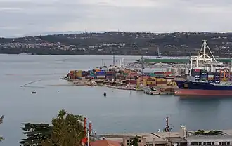 ![]() Mündungsbereich (Bildmitte) im Hafen von Koper | ||