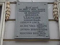 Das Richard-Wagner-Haus in Riga wurde 1780–1782 für das Deutsche Theater Riga errichtet. Hier wirkte 1837–1839 Richard Wagner als Kapellmeister des Theaterorchesters.Koordinaten: 56° 56′ 56,5″ N, 24° 6′ 37,1″ O