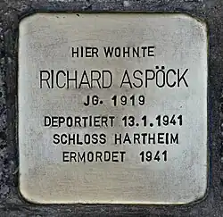 - ↑ Stolpersteine Hallein: Euthanasieopfer: Aspöck, Richard, abgerufen am 20. April 2016.