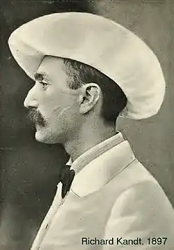Bei einer privaten Romreise sah Kandt in der Nähe der Kirche Santa Maria sopra Minerva die Figur des Altvater Nil, die ihn überaus beeindruckte und den Wunsch in ihm weckte, die seit dem Altertum gesuchte Nilquelle zu finden.[4] Aufgrund der Forschungen Henry Morton Stanleys wusste man, dass diese am Osthang der Berge des Zentralafrikanischen Grabens zu suchen wäre, in Ruanda, einem bis dahin unerforschten Land. Kandt entschloss sich, beim Berliner Anthropologen und Ethnographen Felix von Luschan zu studieren, um die notwendigen Kenntnisse für eine wissenschaftliche Expedition zu sammeln. Da seine Versuche, sich offiziellen Expeditionen anzuschließen, fehlschlugen, ließ er sich vom Auswärtigen Amt die Genehmigung für eine privat finanzierte Forschungsreise erteilen. Zwischen 1897 und 1907 erforschte er den Nordwesten von Deutsch-Ostafrika. Kandts Suche nach der Nilquelle folgte dem damals üblichen Prinzip, flussaufwärts zu ziehen und beim Zusammenfluss zweier Flüsse dem wasserreicheren zu folgen. Mitte August 1898 erreichte er im ruandischen Nyungwe-Wald das Ende eines Hochtals. In seinem Werk Caput Nili berichtet Kandt darüber: