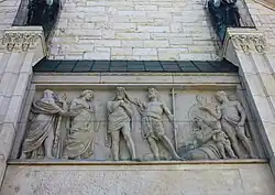 - Relief über dem Hauptportal (Link zum Werk) und dem Seiteneingang (Link zum Werk) der St.–Augustus–Kirche, 1909