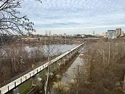 Die Tyler Potterfield Memorial Bridge aus Süden mit Blick auf den Central business district RichmondsBrown's Island als Ausgangspunkt für verschiedene Trails, u. a. zur Geschichte der innerstädtischen Kanälen, die auf einen Entwurf George Washingtons zurückgehen. Zudem kann von dort aus über die instandgesetzte Tyler Potterfield Memorial Bridge das Südufer (Old Manchester) erreicht werden.