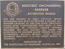 - ↑ environment.gov.au Richmond Bridge. Tasmania ( des vom 2. September 2012 auf WebCite) Info: Der Archivlink wurde automatisch eingesetzt und noch nicht geprüft. Bitte prüfe Original- und Archivlink gemäß Anleitung und entferne dann diesen Hinweis.. (PDF; 741 kB); abgerufen am 1. Oktober 2011.