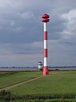 Das 24 m hohe Unterfeuer ist 2460 m vom Oberfeuer entfernt und steht im Watt. Beide Türme bilden eine Richtfeuerlinie von rechtweisend 81°.