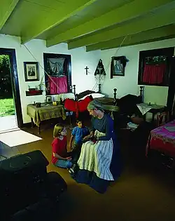 Vater Louis Riel und Julie Lagimodière heirateten 1844 in Saint-Boniface, 1850 zog die Familie nach Saint-Vital. Das Grundstück erwarb Julie Riel von Monsignore Alexandre-Antonin Taché im Jahr 1864, kurz nach dem Tod ihres Mannes. Mit ihren Kindern wohnte sie zunächst in einem nicht erhaltenen Gebäude mit Blick auf die Seine.