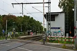 Der Durchgangsbahnhof Bochum-Riemke (früher Bochum-NOKIA, davor Bochum-Graetz) liegt an der Bahnstrecke Bochum–Gelsenkirchen. Er verfügt über zwei Außenbahnsteige. Der Haltepunkt mit dem Kürzel EBGZ kann am Wochenende etwa 40 Zugfahrten der Glückauf-Bahn verzeichnen, werktags sind es doppelt so viele.[18] Der Vest-Ruhr-Express (RE 41) von Bochum Hbf. nach Haltern am See fährt stündlich durch Riemke, hält dort aber nicht. Außerdem fahren insbesondere nachts viele Güterzüge auf der Strecke.