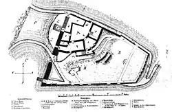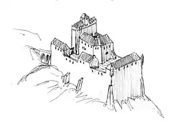 Von der ursprünglichen Burg erhalten sind nur ein Teil der Schildmauer sowie Teile des Berings und des Zwingers.