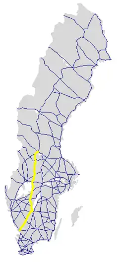 Die Länge der offiziell als Fernverkehrsstraße (stamväg) ausgewiesenen Straße beträgt rund 580 km. Sie ist damit die längste Reichsstraße, die nicht zugleich als Europastraße ausgewiesen ist.[1]