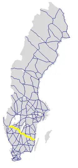 Die Straße führt von Trollhättan über Falköping und Jönköping am Südende des Sees Vättern nach Osten, kreuzt in Jönköping den Europaväg 4 und führt weiter über Nässjö und Vetlanda nach der Hafenstadt Oskarshamn am Kalmarsund, in der sie am Europaväg 22 endet.