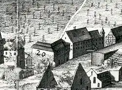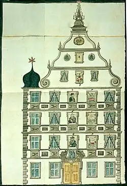 Rinderbachburg, Drechsler'sches Haus. Nachzeichnung eines Gemäldes von J. M. Roscher nach 1735 -