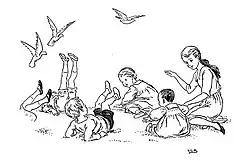 Der Ringelreihen, auch Ringelreigen, ist ein Spiel, bei dem Kinder sich an den Händen fassen und im Kreis tanzen. Dazu wird traditionell „Ringel, Ringel, Reihe“ oder ein anderer Kinderreim gesungen.