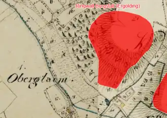 Lageplan des Ringwalls Burgstall auf dem Urkataster von Bayern | ||