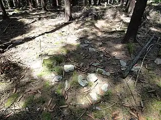 Mauerwerksreste finden sich verteilt auf dem Waldboden | |