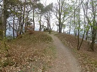 Überreste des nach Westen ausgerichteten Erdwalls | ||