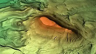 ![]() 3D-Ansicht des digitalen Geländemodells um die Vollburg | ||