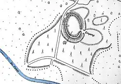 Trotz einer landwirtschaftlichen Nutzung des umgebenden Geländes in den vergangenen Jahrhunderten ist der fast kreisrunde Wall mit 70 bis 85 m Durchmesser und etwa 0,2 ha Innenfläche gut erhalten. Er weist heute noch die ursprüngliche Höhe von etwa 3 m auf. Der Wall wurde aus Plaggen errichtet. Ihm war im Süden ein trockener Spitzgraben von 2 m Tiefe und 6 m Breite vorgelagert. Zwischen Wall und Graben befand sich eine 5 m breite Berme. Unterbrochen war der Graben von einer Erdbrücke, die zum einzigen, heute durch eine Unterbrechung im Wall noch sichtbaren Zugang der Anlage an der Ostseite führte. Im Norden lag die damals etwa in 50 m Entfernung vorbeifließende Fuhse.
