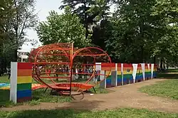Ende der 2010er Jahre stand ein mehr als mannshoher Schriftzug „I Love Tirana“ aus Betonbuchstaben und einem Metallherzen, in das man sich setzen konnte, im Park. Wie das Newborn-Denkmal in Prishtina wurde die Installation immer wieder anders bemalt. Im Rahmen der Neugestaltung im Jahr 2020 wurde der Schriftzug wieder entfernt.
