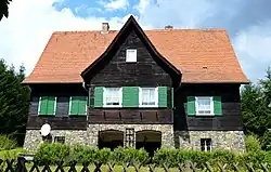 Das Gebäude entstand 1947 nach einem Entwurf des Ballenstedter Baurates Kurt Ehrlich als Wohnhaus für einen Mühlenbesitzer, wohl der benachbarten Rinkemühle. Das Souterrain des Hauses ist aus Bruchsteinen errichtet, die Fassade der darüber liegenden Geschosse ist mit einer Holzverschalung versehen. Grundriss und die gesamte Konzeption des Hauses sind aufwendig. Die Nebengebäude des Objekts sind an die Gestaltung des Wohnhauses angepasst.