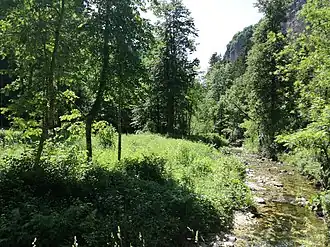 | Quelle | nördlich von Ruffrè in der Nonsberggruppe 46° 25′ 38″ N, 11° 10′ 58″ O | |