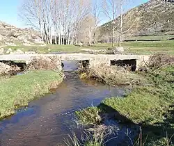 - Ein Steinplattensteg aus schweren Granitsteinen überquert den Bach Guijo.