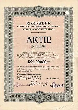- ↑ Informationstafel: Ehemalige Reißverschlussfabrik RiRi, Gennebrecker Straße 19a-21, Wuppertal. Abgerufen am 27. Mai 2017.