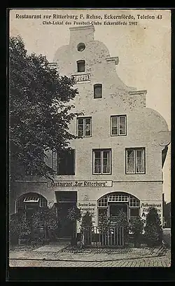- ↑ Anzeige „Ritterburg“ im Adreßbuch und Geschäfts-Handbuch für die Stadt und Kreis Eckernförde aus dem Jahre 1910; Verlag C. Heldt Eckernförde
