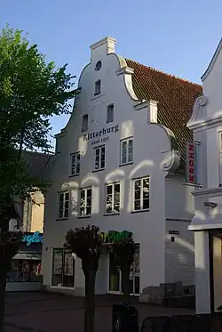 - ↑ Hans Heinrich Janssen: Mittelalterliche Grabsteine im Sockel der sogenannten Ritterburg, In: Heimatgemeinschaft Eckernförde, Jahrbuch 2018, S. 21 ff.