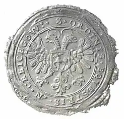 Siegel des Ritterkanton Kraichgau. Der Esel im Herzschild erinnert an die frühere Gesellschaft mit dem Esel