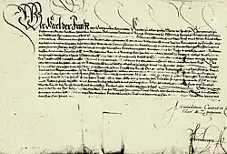 Mit dieser Urkunde bestätige Kaiser Karl V. 1544, dass trotz der Türkenhilfe die Ritterschaft Kraichgau alle Freiheiten behalte