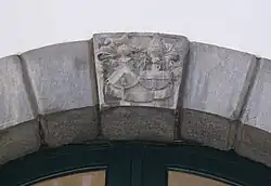 Das Tor auf der Hofseite mit dem Allianzwappen von Nicolaus Voetz und Maria Katharina Schorner -