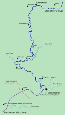 Um den gewundenen Lauf des Flusses für Schiffe leichter befahrbar zu machen und eine Verbindung zum Mersey zu schaffen, wurde im 18. Jahrhundert die Mersey and Irwell Navigation gebaut, die am Ende des 19. Jahrhunderts durch den größeren und noch heute betriebenen Manchester Ship Canal ihre Rolle, Manchester mit Liverpool und der offenen See zu verbinden, verlor.