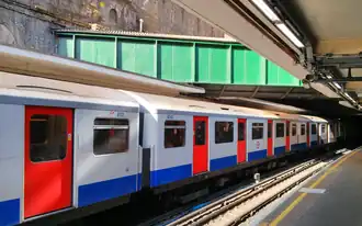 ![]() Der Westbourne durchfließt in einem Aquädukt (grün) die U-Bahn-Station Sloane Square. | ||
