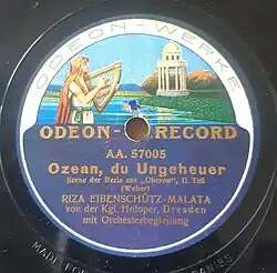 Riza Eibenschütz hinterließ wenige sehr seltene Platten für Gramophone (Dresden 1908) und Odeon (Berlin 1910).