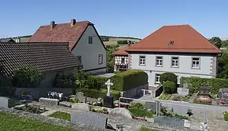 An die wichtige Poststation, die lange Zeit im Dorf bestand und deren Gebäude noch im Nordteil des Ortes (an der B8) steht, erinnern auch die Reste der Alten Postbrücke aus der Mitte des 18. Jahrhunderts. Neben einigen weiteren Gebäuden aus dem 18. Jahrhundert haben sich viele Bildstöcke und Kleindenkmäler auf der Flur des Dorfes erhalten.