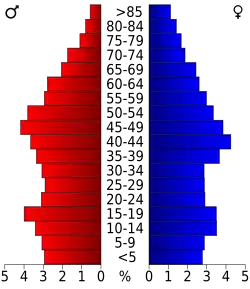 Auf das gesamte County bezogen setzte sich die Bevölkerung zusammen aus 23,4 Prozent Einwohnern unter 18 Jahren, 8,7 Prozent zwischen 18 und 24 Jahren, 26,6 Prozent zwischen 25 und 44 Jahren, 26,5 Prozent zwischen 45 und 64 Jahren und 14,8 Prozent waren 65 Jahre alt oder darüber. Das Durchschnittsalter betrug 40 Jahre. Auf 100 weibliche Personen kamen 98,0 männliche Personen. Auf 100 Frauen im Alter von 18 Jahren oder darüber kamen statistisch 96,0 Männer.