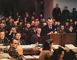 Jackson wurde 1945 von seinem Amt als Richter am Obersten Gerichtshof beurlaubt, um bei der Ausarbeitung der Londoner Charta des internationalen Militärtribunals mitzuhelfen, die die rechtliche Grundlage für die Nürnberger Prozesse lieferte. Anschließend reiste Jackson nach Deutschland, wo er der Chefankläger der Vereinigten Staaten wurde. Der spätere Erfinder des Begriffs „Völkermord“, der polnische Völkermordforscher und Anwalt Raphael Lemkin, assistierte ihm dabei. Diese Rolle füllte Jackson nicht nur mit juristischen wie rhetorischem Geschick, sondern auch mit großer Hingabe aus. Nach dem Prozess gegen die Hauptkriegsverbrecher gab er diese Stellung jedoch auf und kehrte in die Vereinigten Staaten zurück. Sein Nachfolger wurde Thomas J. Dodd.