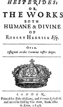 - 1648 Hesperides; or, the Works Both Human and Divine of Robert Herrick, Esq.