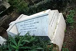 Als erfolgreicher Schriftsteller ließ sich Ballantyne zusammen mit seiner Familie in Harrow (London) nieder. Im Oktober 1893 reiste er in Begleitung einer seiner Töchter nach Rom, da ihm das dortige Klima förderlicher für seine Gesundheit schien. Am 8. Februar 1894 starb Robert Michael Ballantyne an Morbus Menière[1] und fand seine letzte Ruhestätte auf dem protestantischen Friedhof von Rom (Testaccio).