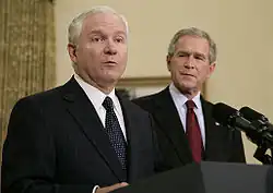 Nach dem Rücktritt von Donald H. Rumsfeld nominierte George W. Bush Robert Gates am 8. November 2006 als Verteidigungsminister. Der Senat bestätigte die Nominierung am 6. Dezember 2006 mit 95:2 Stimmen bei drei Enthaltungen. Die Nein-Stimmen kamen von den republikanischen Senatoren Rick Santorum (Pennsylvania) und Jim Bunning (Kentucky).