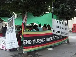 Mugabe regierte Simbabwe ab etwa 2000 offen als Diktator. Seine Herrschaft war von Hungersnöten, Hyperinflation, Arbeitslosigkeit[5] und schweren Menschenrechtsverletzungen geprägt; letztere führten zum Ausschluss des Landes aus dem Commonwealth.[6] Mugabe wurde zudem die Einreise in die Europäische Union mit Ausnahme von Besuchen von Veranstaltungen der Vereinten Nationen und des Heiligen Stuhls verweigert.